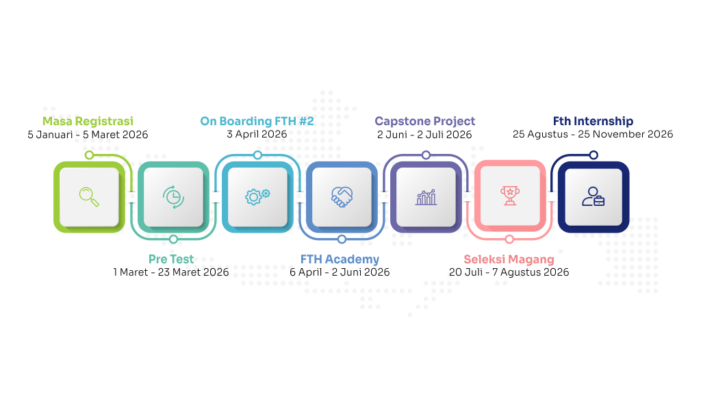Future Talent Hub (FTH) adalah program yang bertujuan untuk mempersingkat waktu tunggu lulusan universitas hingga mendapatkan pekerjaan pertamanya. Program ini menawarkan pembelajaran praktis selama 2 bulan melalui FTH Academy, diikuti oleh pengalaman kerja selama 4 bulan melalui FTH Internship. Melalui kemitraan dengan universitas dan berbagai sektor industri, Future Talent Hub memastikan bahwa lulusan memiliki keterampilan dan pengetahuan yang relevan, meningkatkan peluang kerja, serta berkontribusi pada pertumbuhan ekonomi nasional.