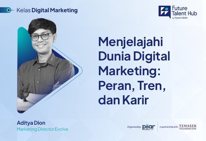 Peran digital marketer (DM) mencakup berbagai tanggung jawab yang memanfaatkan platform online untuk meningkatkan kesadaran merek, menghasilkan prospek, dan pada akhirnya mengubah prospek menjadi pelanggan. Program Future Talent Hub: Learning Track Digital Marketing bertujuan untuk memberikan wawasan dasar mengenai peran dan tanggung jawab seorang DM dalam organisasi.
